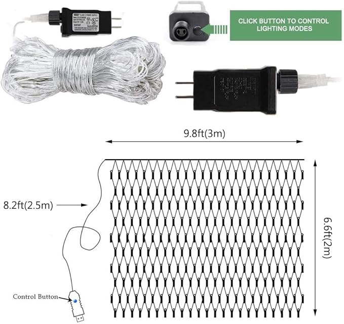 - 【Specification】9.8ft x 6.6ft(3m x 2m), 240 LED lights, Lead length 9.8ft(3m).