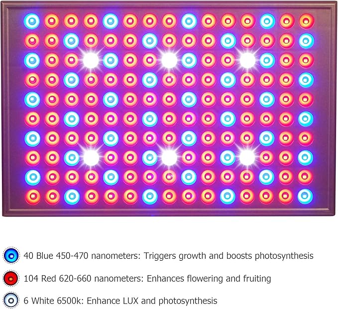 - 🌷[Full Spectrum Plant Lights]--Diboys new generation seedling light equipped with 150pcs led chip: 104 Red+40 Blue+6 White. Perfect wavelength Ratio that is ideal for all growing stage. The light fixture itself does not get hot or burn your plants. Low power consumption save your electricity bill.