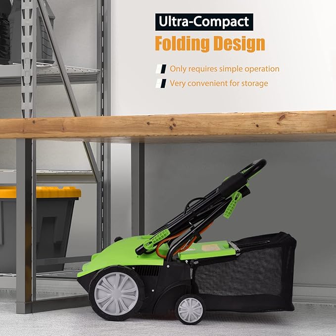 - 【2-In-1 Dethatcher & Scarifier】The powerful 12-amp motor rakes 13” wide to effectively solve the problems of trimming and scarifying. In addition, a 11 gallon grass collection bag can gather the lawn debris automatically to save your time and energy.