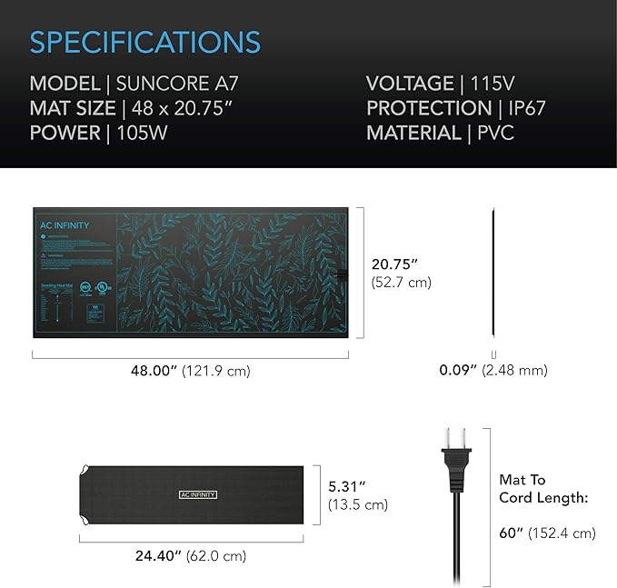 AC Infinity SUNCORE A7, Waterproof Seedling Heat Mat 48" x 20.75" MET & UL-Certified Heating Pad for Indoor Gardening, Hydroponics, Germination, Cloning