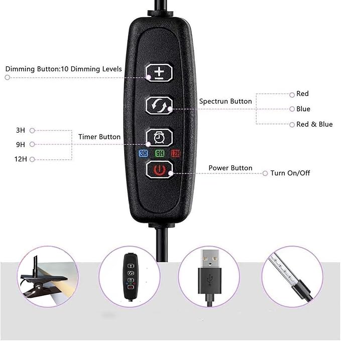 - ADJUSTABLE & LARGER ILLUMINATION AREA: The 3-head lamp with flexible arm which is easy to adjust the light in any direction, allows you to light your plants in 360-degree,which can enlarge the area of the effective lighting.