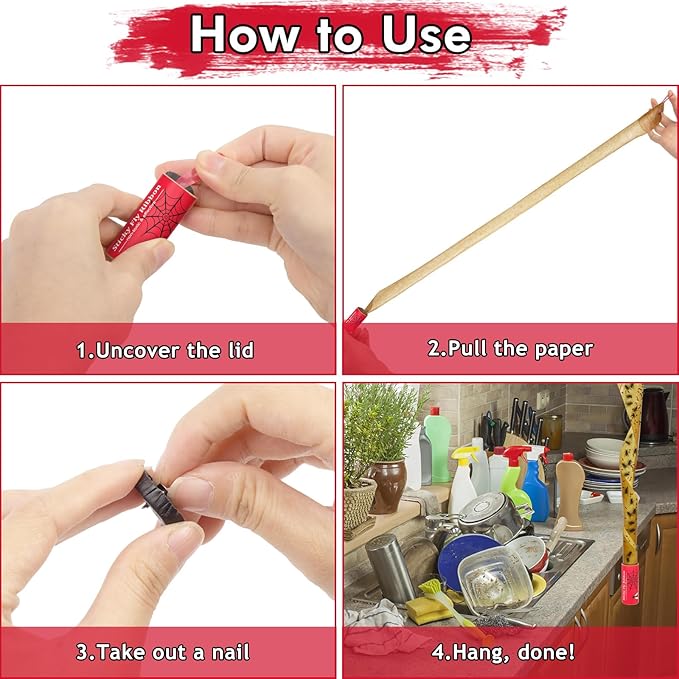 - Notice: when the weather gets hot, the gel of the fly strips melts, the red hanging string can be easily pulled off. We suggest you prepare a rope and a pair of scissors, when a small amount of sticky paper is pulled out, poke a hole in the paper with a pair of scissors and tie your rope, at last, pull the rest out cord slowly while turning tune in a counterclockwise motion. Or nail the sticky fly paper directly to the wall. It's easier to refrigerate for a while before using it!