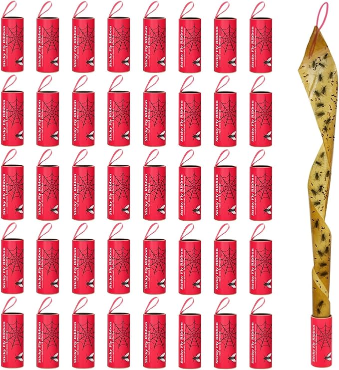 Stingmon 40 Pack Fly Trap, Fruit Fly Traps Indoor for Home, Fly Traps Outdoor Hanging, Flying Insect Trap, Fly Strips Tape Paper Ribbon, Gnat Traps for Bug, Insect, Pest, Mosquito, Red