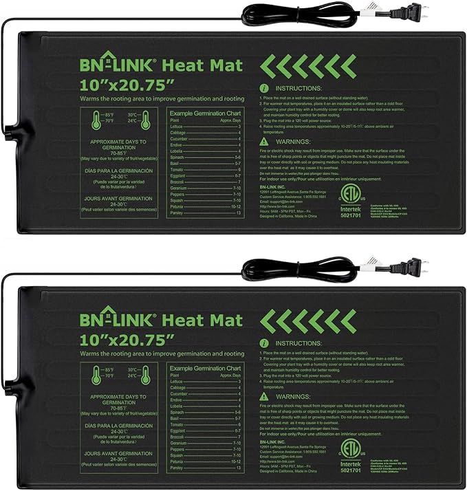 - EASY SETUP AND CLEAN: The BN-LINK Durable Seedling Heating Mats feature multiple layers of flexible waterproof PVC that encase heat-conducting wire. The outer layer is sealed to protect the internal heating elements. The mats are easy to wipe clean with just a damp cloth and will resist rusting and corrosion.