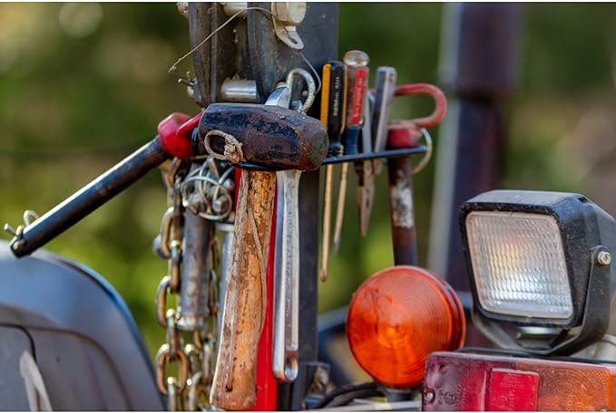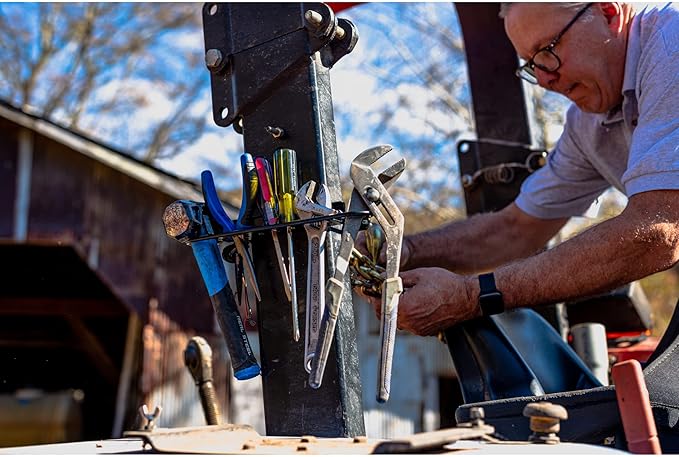- HEAVY DUTY- Powder coated steel for long life - keeps your most needed tools on the tractor without a cumbersome toolbox - also keeps a chain stowed on your tractor out of your way