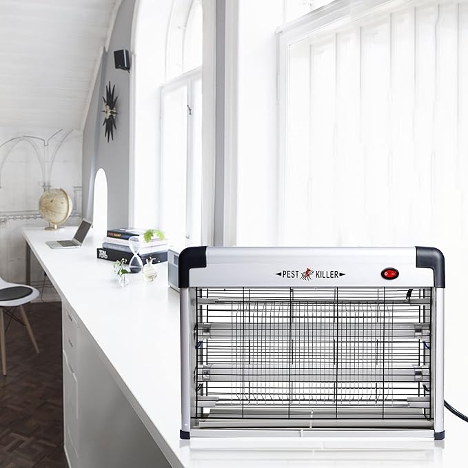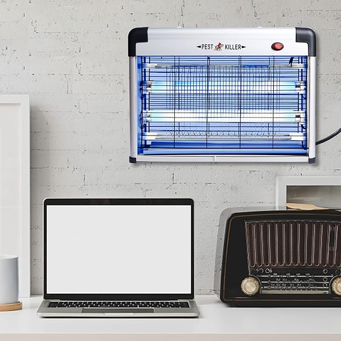 - HANGING OR STAND: Phosooy indoor insect zapper is designed thin and modern with non-clogging and non-rust mental grid. It can be placed on a flat surface, or hung with the accompanying chain attaching to the hooks on the top of the zapper.