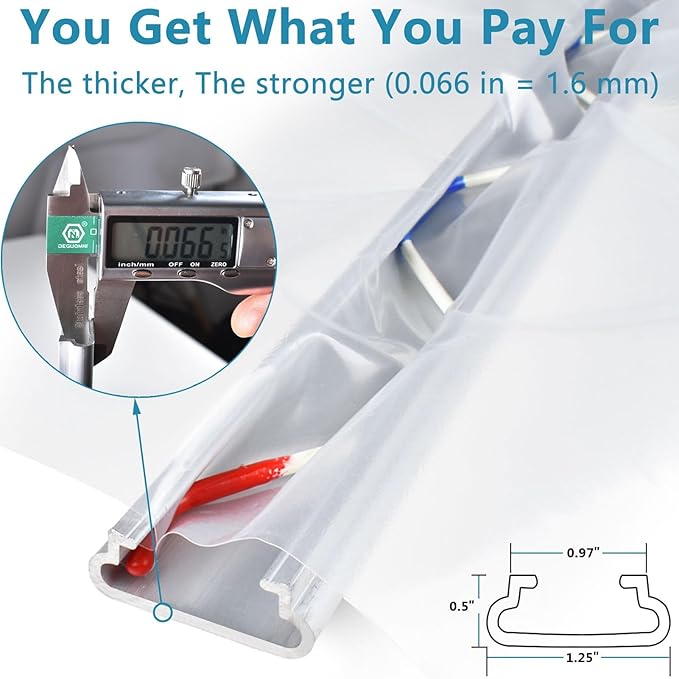 - ✅#1 Spring Wire & Lock Channel for Greenhouse - High quality Aluminum-Alloy lock channel & PVC coated spring wire. 6.6 ft. in length each/ Width: 1.25"/ Height: 0.5"/ Wall thickness: 1/16"/ Inside of channel 1.14".