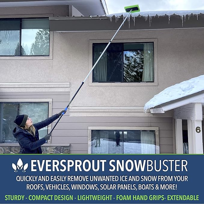 - EXCLUSIVE S-SHAPE DESIGN FOR PUSH/PULL SNOW REMOVAL ACTION โ The unique โSโ shape design allows you to easily push or pull snow, creating extra efficiency and effectiveness for snow removal. Here at Eversprout we only use Proven Materials that are built to last. The pole is made of premium lightweight Aluminum for the right combination of sturdiness and weight, while the SnowBuster is made of ultra-condensed foam for a scratch free experience.