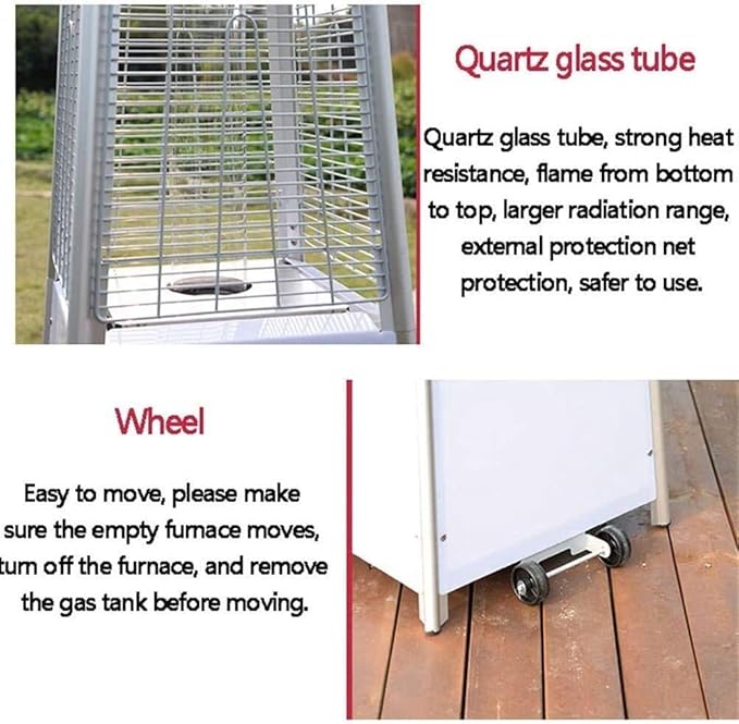 - BUILT-IN WHEELS FOR EASY MOVING — Integrated wheels make it easy to reposition the heater to different areas of your patio or yard.