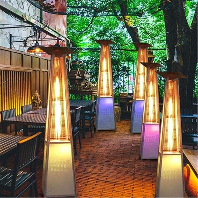 Avenlur Pyramid Patio Heater, 48,000 BTU Outdoor Propane Heater with Quartz Glass Tube, Cover, Ignition & Wheels — Freestanding Gas Heater for Backyard, Deck & Patio (LED Lights)