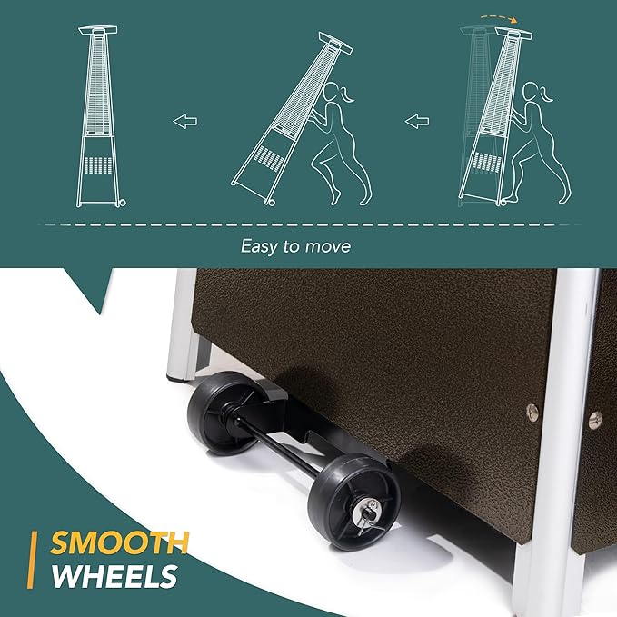 Pamapic Patio Heater, 48,000 BTU Pyramid Flame Outdoor Heater with Cover, Quartz Glass Tube Hammered Bronze Tower Propane Outdoor Heater with Wheels