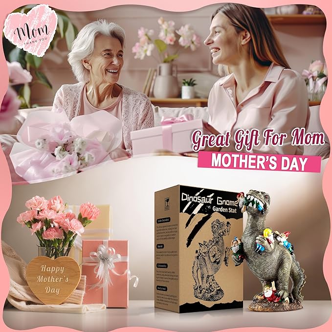 - Adorable Garden Decor: This Dinosaur Gnomes Statue made up of high-quality resin and has excellent weatherproof performance, is an adorable decoration for garden, lawn, patio and yard which can make your home more lively