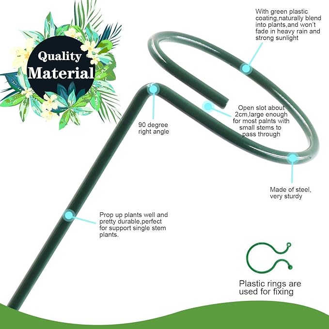 - Powder spraying process: HiGift Plant support stakes is powder spraying process on the surface, won't fall off for years use, The plant support has graceful line and smooth finish, simple and elegant. Dark green color appearance helps to blend into stem plants, nearly invisible, pretty natural. With the support ring, each stem plant will keep straight and be individual, elegant and graceful.