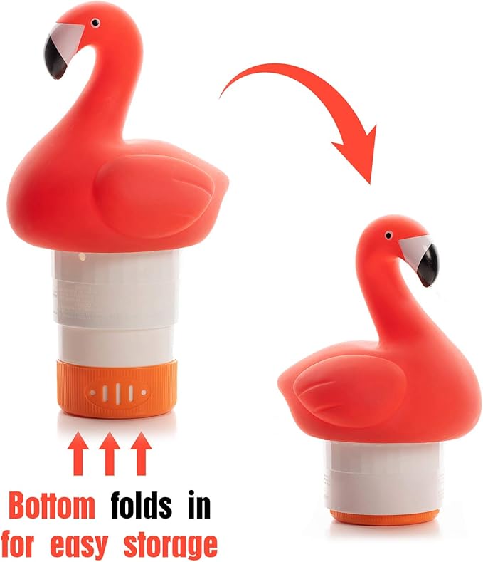 XY-WQ Chlorine Floater, Floating Pool Chlorine Dispenser (Flamingo), Fits 1 and 3 Inch Tablets for Large and Small Pools, Hot Tub, Spa