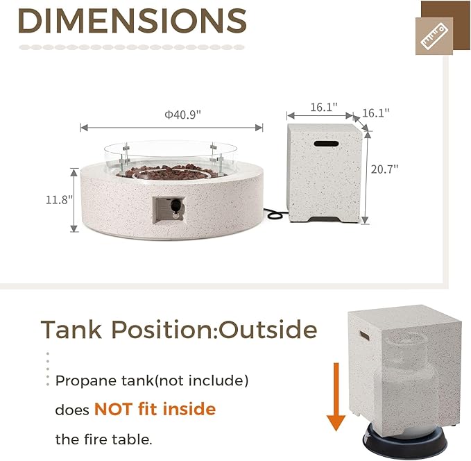 - ⛱️【 Unique Craftsmanship & Design 】 - The propane fire table spraying with magnesium oxide on the top of the surface to protect from cracking. The internal burner is made of stainless steel for a longer working and evenly heated.
