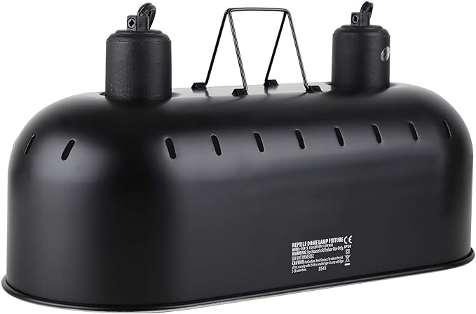 - 【HANGING EASILY】: This reptile heat lamp can be simply placed on the screen of reptile terrarium and chameleon cage. If you would like to hang this dual lamp fixture for reptiles to adjust the height from lamp to your pet, the hanging hook allows to hang the fixture up with the lamp stand easily. The warning label will turn red when the temperature of the dual lamp fixture exceeds safety degree. Please keep your pets away from where they could possibly reach when using heating bulbs.