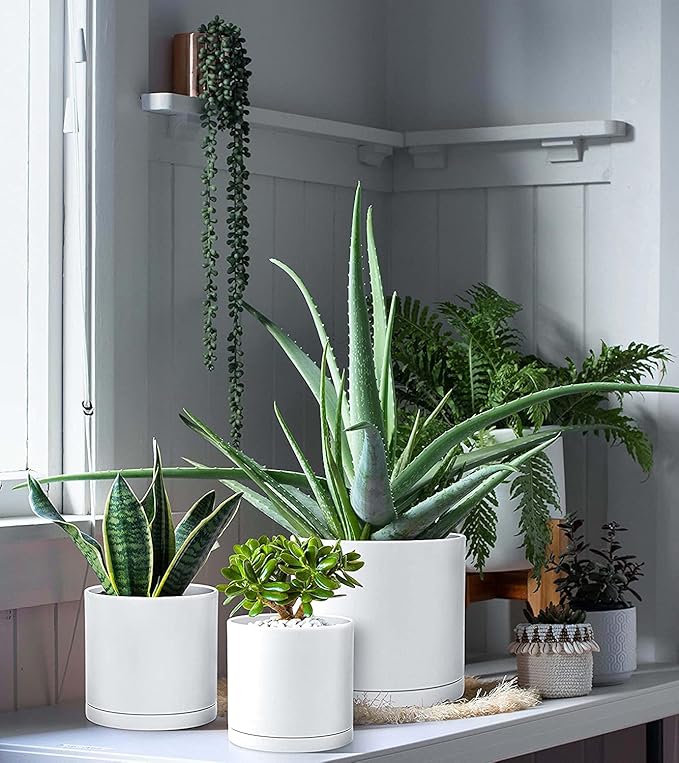 - Medium Set of 3 Planter Pots: 6 Inches, 6.5 Inches, 8 Inches in Diameter & Height with tray/saucer included - Plants in the images are not included.