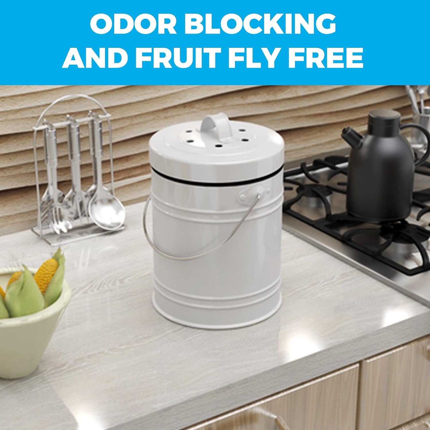 - ODOR AND FRUIT FLY FREE - Our countertop compost bin traps odors and blocks fruit flies with a thick activated charcoal filter and a tightly sealed lid so your kitchen stays fresh, not funky. deal for apartments, homes, and even offices.