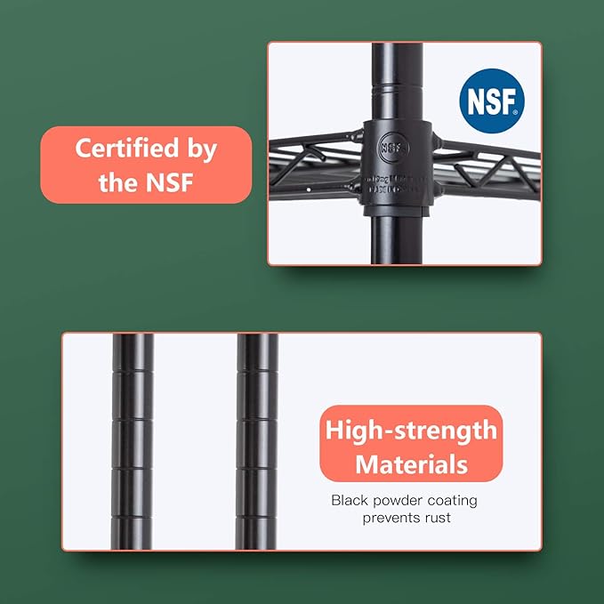 - ✔【EASY TO ASSEMBLE】: The storage shelves is easy to assemble. This wire shelf structure is very simple, No tools required to assemble it. The wire shelving unit is simple to assemble, You only need to spend 15min to install.