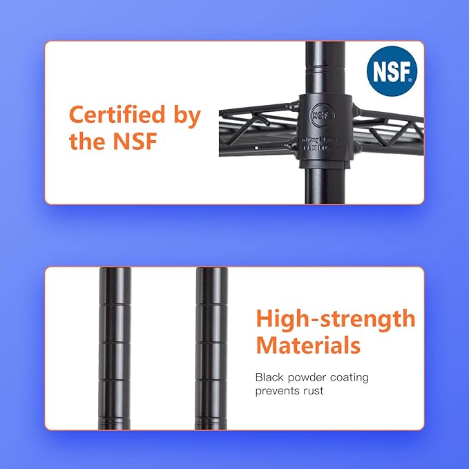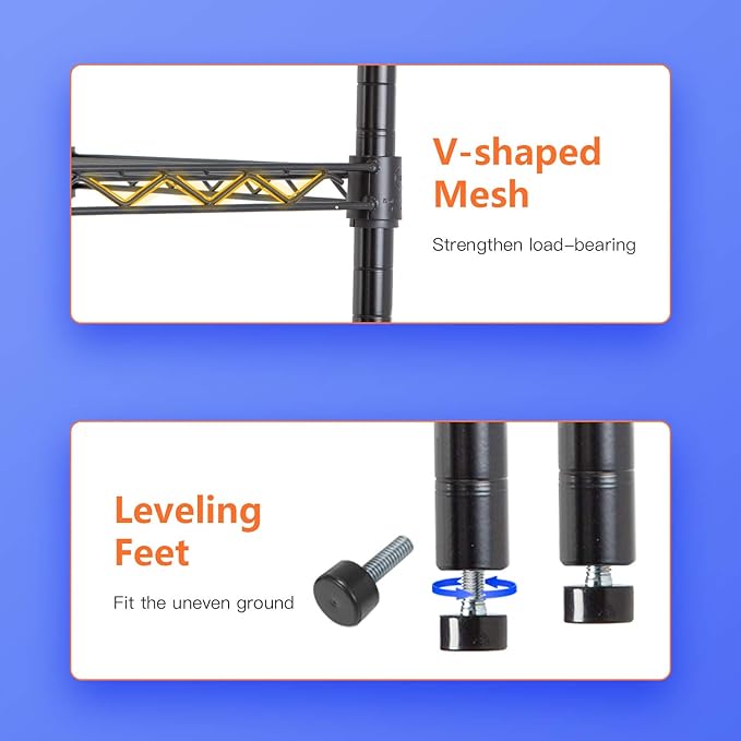 - CUSTOMIZABLE HEIGHT OPTIONS: Adjustable wire shelving design lets you tailor spacing between two racks for closet storage, garage shelving, or kitchen organization. Perfect for varying item sizes.