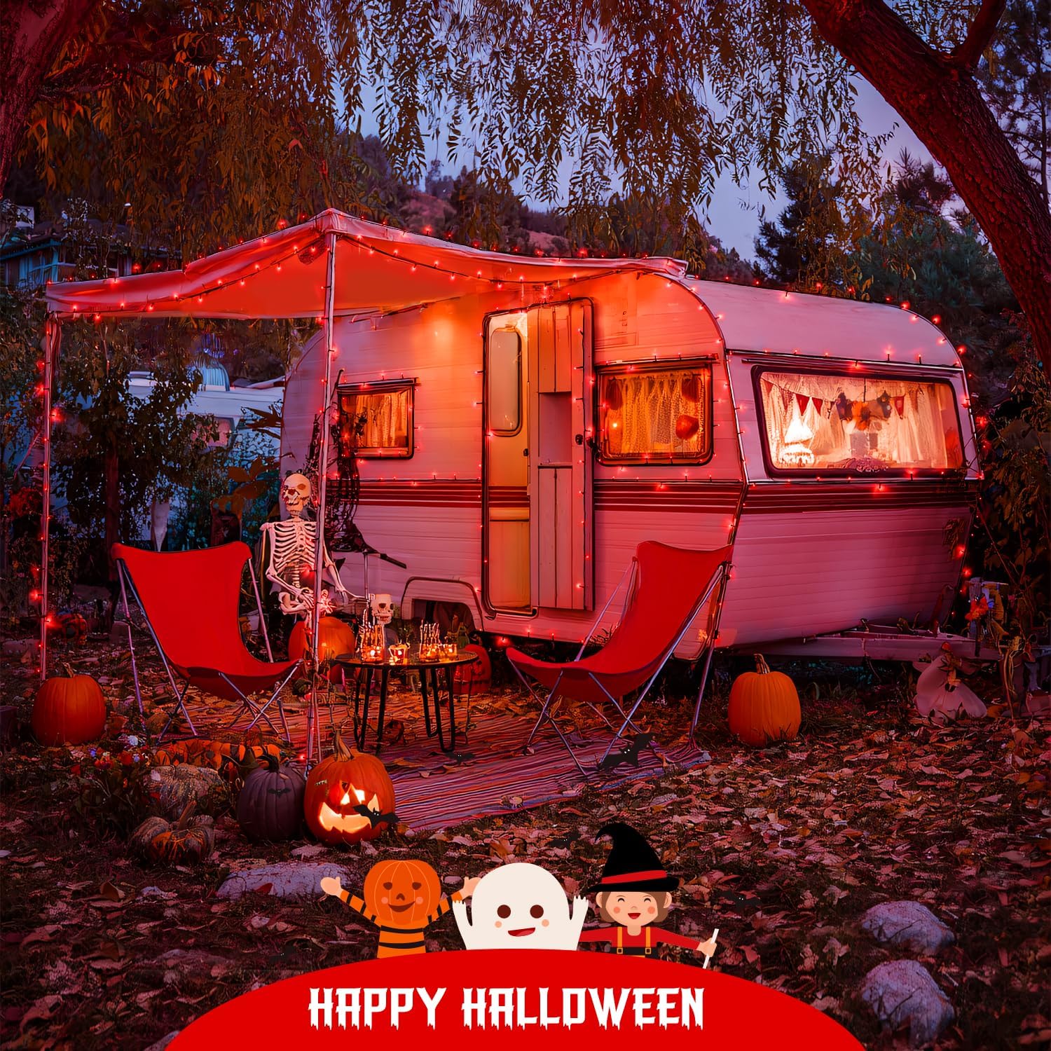 JMEXSUSS 2 Pack Red Solar Lights Outdoor Waterproof, Total 400 LED 151FT Red Halloween Lights, 8 Modes Solar Christmas String Light for Outside Yard Patio Garden Tree Decorations