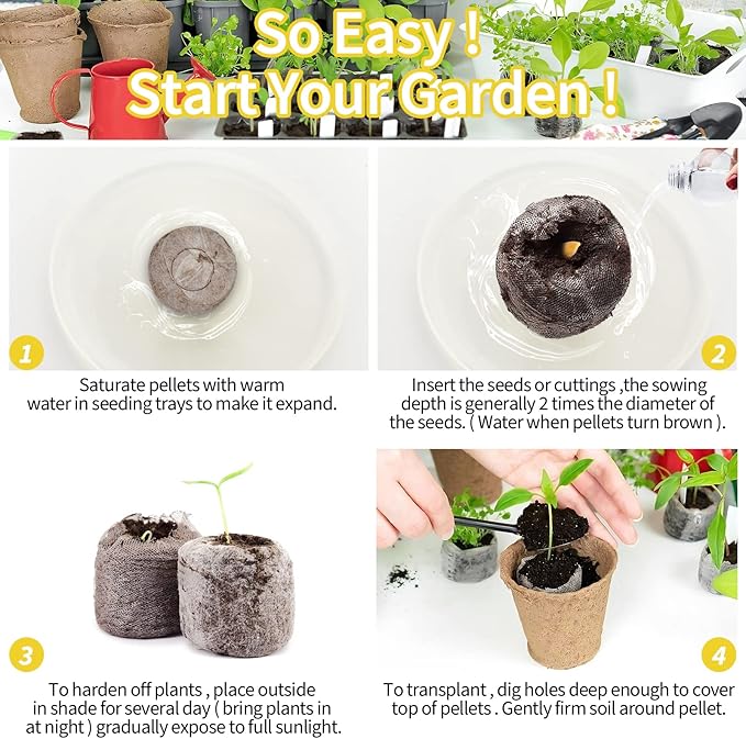 - Wide Application: Seeds starter pellets are great for starting your veggies, garden plants indoors or outdoors, such as tomatoes, peppers, evening primrose, making your seedling work easier and lower cost; You can also plant it with your kids, especially for gardening and growing enthusiasts