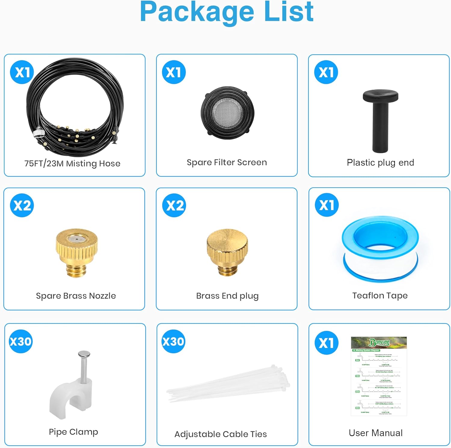 - 💧 Premium Leak-Proof Design: This misting system is built from UV-resistant black PE tubing, upgraded brass mist nozzles for smooth and drip-free spraying, and secure, leak-proof connectors, ensuring durable performance.