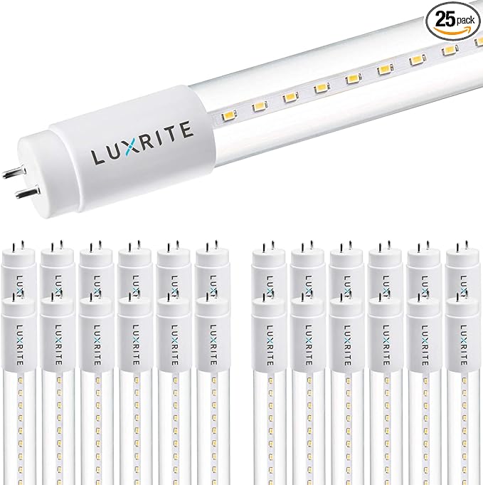 LUXRITE 25-Pack 4FT T8 LED Tube Light, Ballast and Ballast Bypass Compatible, 13W=32W, 3000K Soft White, Clear Cover, Single-End or Double-End Powered, Damp Rated, UL Listed