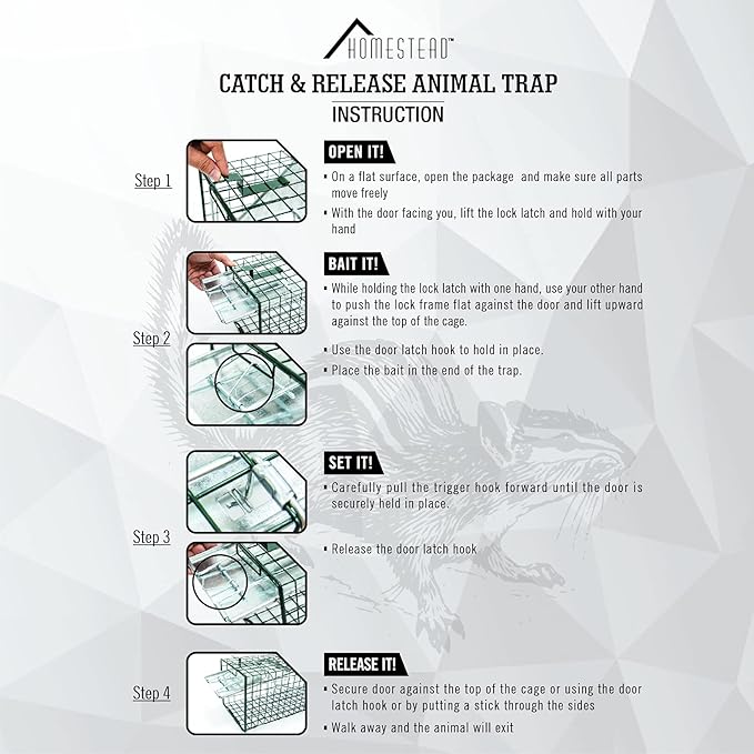 - Solid Construction Animal Trap: Constructed with high quality, rust-resistant wire mesh, and heavy-duty steel for long life and maximum resistance to rust and corrosion