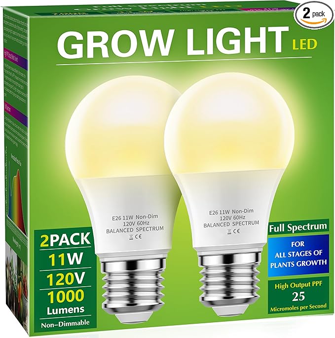 - High Brightness & Energy Saving: A19 LED plant grow light bulbs deliver 180-degree 1000LM bright light output. Use High Lumen LED Chips equivalent to 100w traditional light bulb while consumes only 11 watts, saving 90% of your electricity bill.
