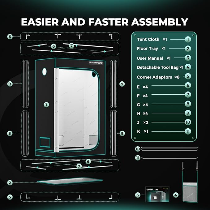 - STURDY METAL STRUCTURE AND EASIER SETUP: Crafted with stable metal poles, corner adapters and top bars, this growing tent is superior for its durability, neither rusting nor paint-falling. The thick and solid steel poles withstand more weight than other small grow tents. It's easy to assemble with pop snaps and holes, quickly build up your growing setup for hydroponic grow and gardening in minutes