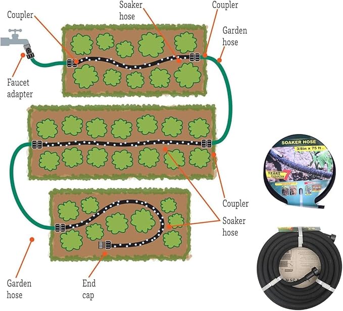 - PERFECT DELIVERY OF WATER - Save up to 70% water. Evenly waters from beginning to end slowly, steady release at the soil line. This ensures that water is not wasted. The slow release allows the soil around plant roots to gradually absorb the water. And the proximity of the hose to soil means that very little if any is lost to evaporation.Liquid fertilizer can be used to distribute nutrients to planting through the soaker hose.