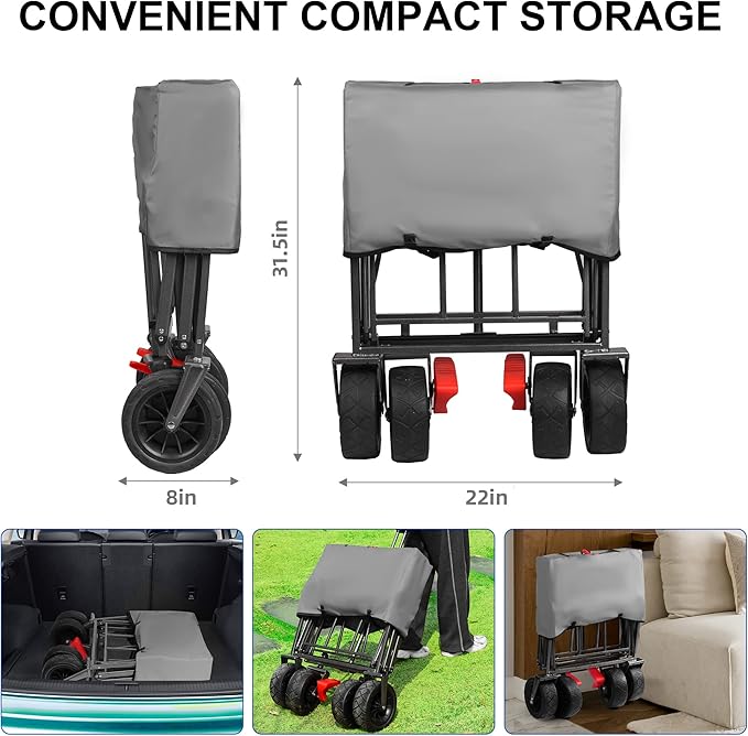- MULTIFUNCTIONAL USAGE - This utility folding wagon cart is perfect for hauling items while shopping, on trips, vacation, DIY in the garden, picnic, camping, sports