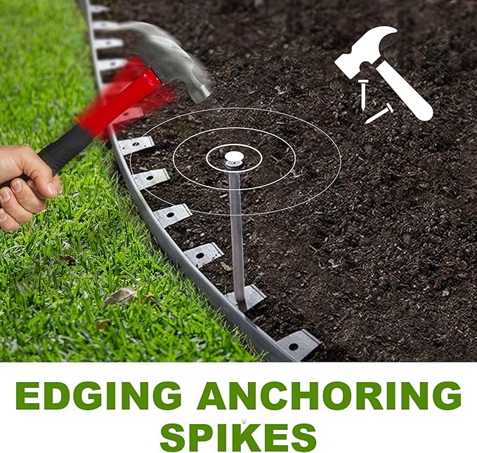 - MULTIPURPOSE: Metal landscape edging anchoring spikes used for no-dig landscape edging anchoring, paver edging, weed barriers, artificial turf, stake tents, timber and more, and most soil types.
