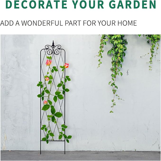- Special Butterfly Pattern design: Interesting coloring of antique black,which adds an attractive part of your functional backyard.Trellis is perfect for climbing plants, and makes the pretty landscape addition to your yard ,such as clematis,roses,jasmine,tomato vines and so on.