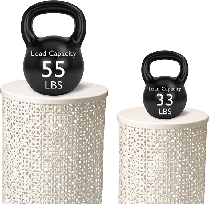 - Sturdy : The set of 2 decorative garden stools are made of high quality metal, sturdy and rustproof for long-time use. Size: L: 14.5"D×19.25"H, S: 12.5"D×16.5"H. Weight capacity: 55 lb.