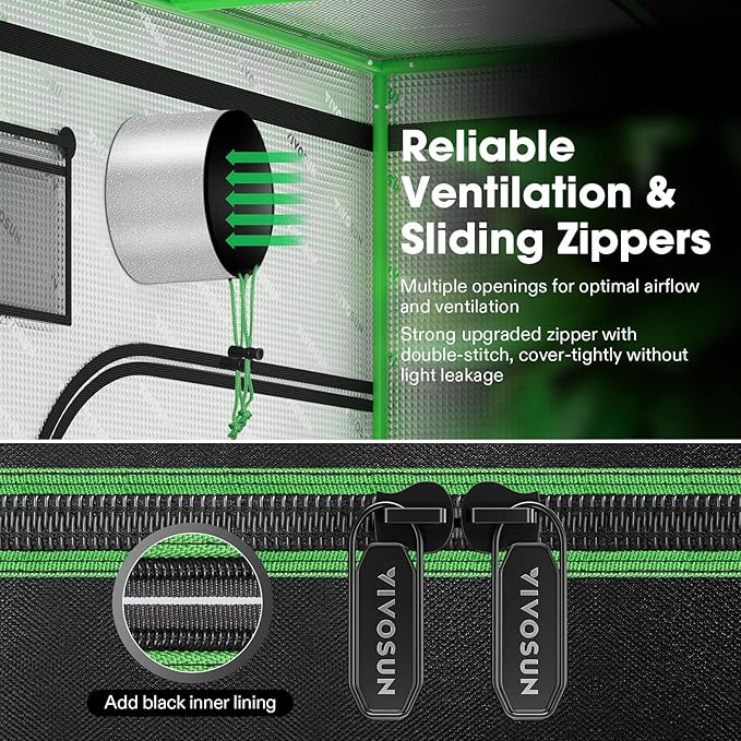- Promote Plant Growth: Vivosun grow tents are equipped with a lined zipper double stitched to prevent light leaks; made of 100% reflective mylar to ensure plants fully absorb lightsโ nutrients and energy