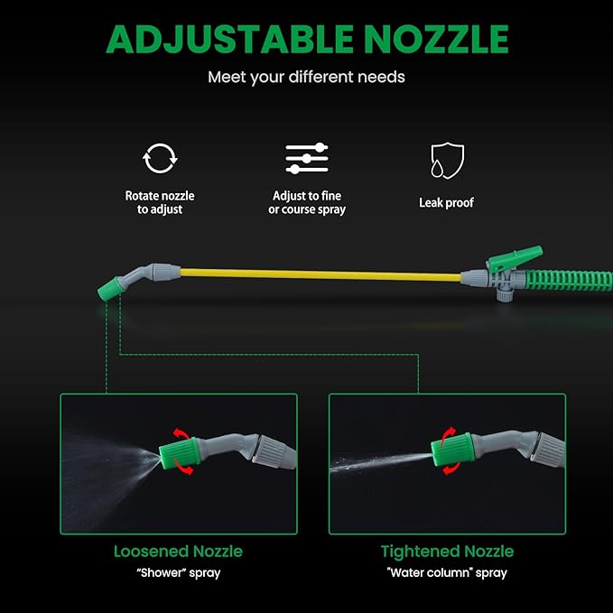 - PRECISION AT YOUR FINGERTIPS: The reinforced flexible hose, paired with a chemical-resistant polymer wand, continuous spray controller, and adjustable nozzles, provides unparalleled precision. From a fine mist for delicate flowers to a targeted stream for stubborn weeds, our pump sprayer adapts to your every need