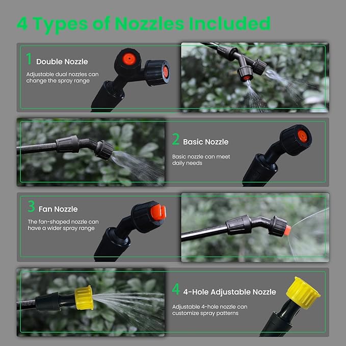 - RELIABLE COMPONENTS: Reinforced flexible hose with chemical resistant polymer wand, continual spray controller, and fully adjustable nozzles