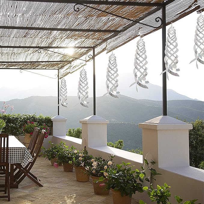 Hausse Bird Repellent Spiral Reflectors Silver Mylar Spinner, Hanging Reflective Bird Deterrent Device, Garden Decorative Scare Birds Away, Like Woodpeckers, Pigeons and Geese, 6 Pack