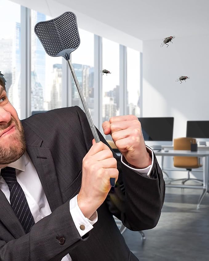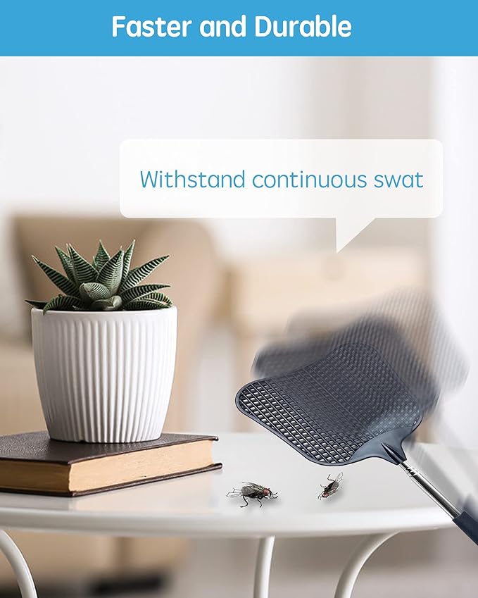 Fly Swatter Heavy Duty Set, with Durable Telescopic Stainless Steel Extendable Handles, for Home, Classroom and Office, 2Pcs, 2 Colors
