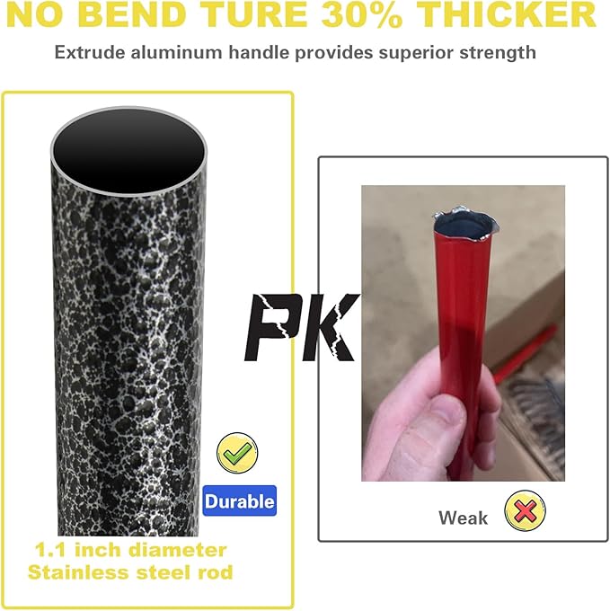 - 【Sturdy and Durable】1" diameter handle of rakes for gardening is made of extra thick stainless steel, and the garden rake is made of durable military steel.