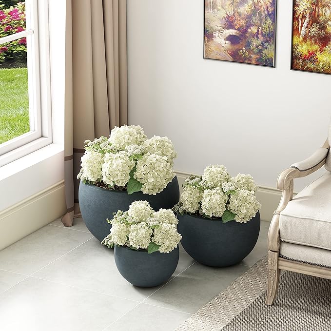 Kante 19.9",15.7",11.8" Dia Round Concrete Planter Set of 3, Outdoor/Indoor Large Bowl Plant Pots with Drainage Hole and Rubber Plug for Garden Patio Balcony Home, Dark Gray
