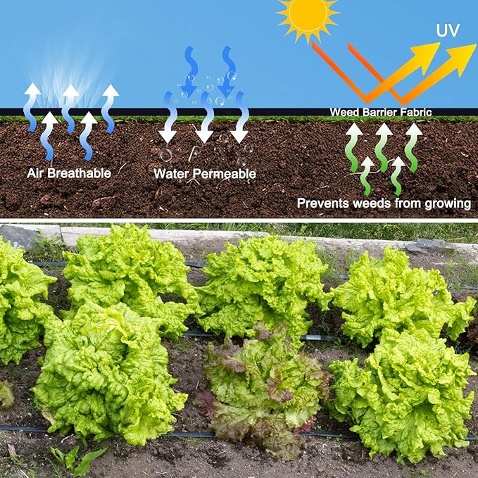 - Super Permeable Weed Cloth: Our ground cover weed barrier is designed to let air and water through, thus conserving your soil’s moisture and preserving its value. Say goodbye to weeds without blocking air or water, be a happy gardener