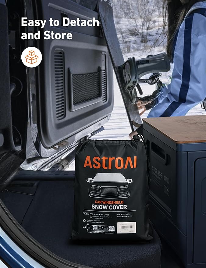 AstroAI Car Windshield Snow Cover, Windshield Cover for ice and Snow, Frost Windshield Cover for Ice, 2*Removal Side Mirror Protector, Windproof UV Sunshade Cover for Cars, SUVs, Vans