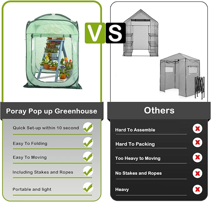 Porayhut Pop Up Greenhouse Tent,Portable X-Large Walk-in Flower House ,Indoor Outdoor Gardening Plant Sunshine Room with PE Mesh Cloth Cover for Protecting Plant from Cold Frost & Birds