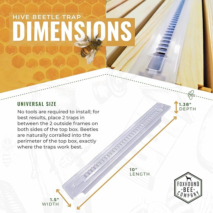 - NEW FOXHOUND DESIGN: 12 packs of reusable small hive beetle traps for trapping beetles inside of a beehive without using any harsh chemicals inside the hive. Each trap works to catch beetles and prevents them from getting outside the trap and laying eggs.