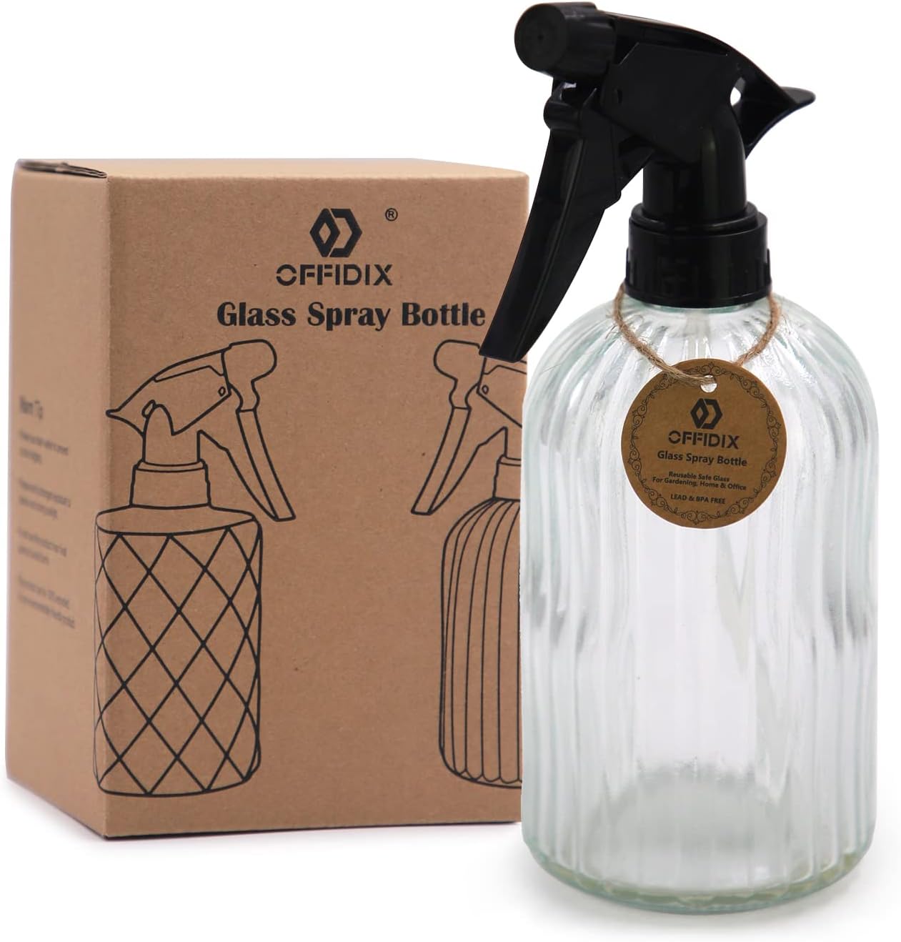 OFFIDIX Spray Bottle, Pressure Watering Can, Handheld Spray Bottles, Outdoor Indoor Plant Mister, 0.4L/13.5oz Glass Water Spray Bottle for Garden, Plants, Cleaning, Hairdressing (Clear)