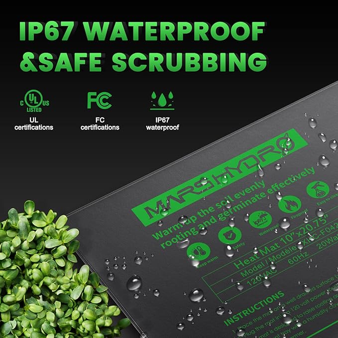 - 🌱【Multi-Function Heating Mat Kit】: MARSHYDRO seedling heat mat kit is designed to provide continuous warmth to your seeds, promoting faster germination, propagation and healthier plant growth, with the included thermostat you can easily adjust and maintain The optimal temperature range for a particular seed or plant. Ideal conditions to ensure successful germination