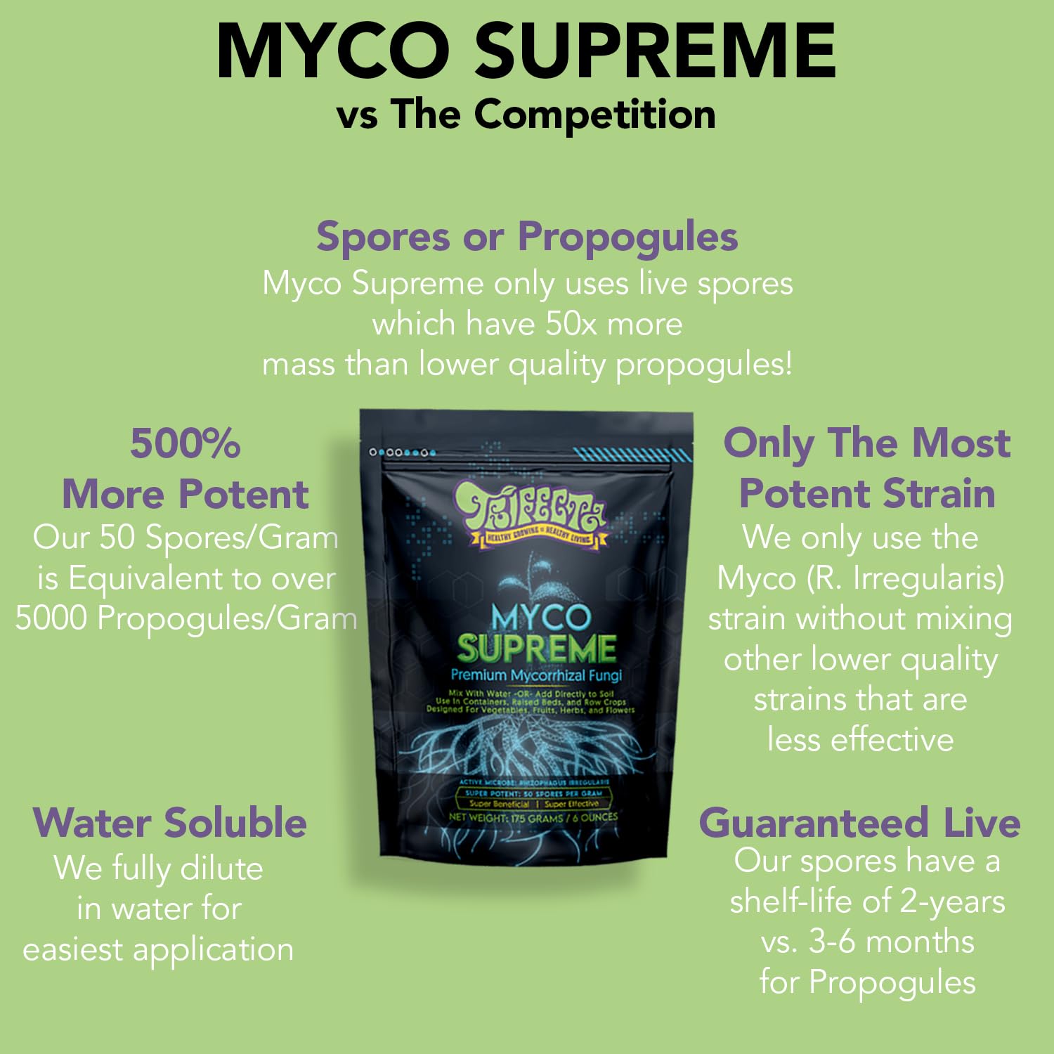 - FOR WIDE VARIETY OF PLANTS, FRUITS, VEGETABLES, FLOWERS & TREES. Use our mycorrhizal fungi for roses, grass lawns, fruiting plants, trees, vegetables, flowering plants, and herbs. Works in soil pots, hydroponic systems, and all growing mediums. Use in plant beds, indoors and outdoors, Only ONE application of Myco Supreme is needed for a maximum root stimulant for plants to receive optimal and explosive root growth. Safe with compost teas, beneficial bacteria, amino acids and all fertilizers.